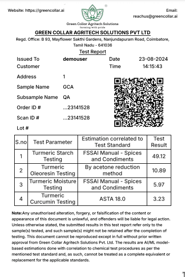 Green Collar Agritech'sTARAM®offers a revolutionary solution. Our portable NIR-based analyzer provides rapid, on-site quality assessments for a wide range of spices.